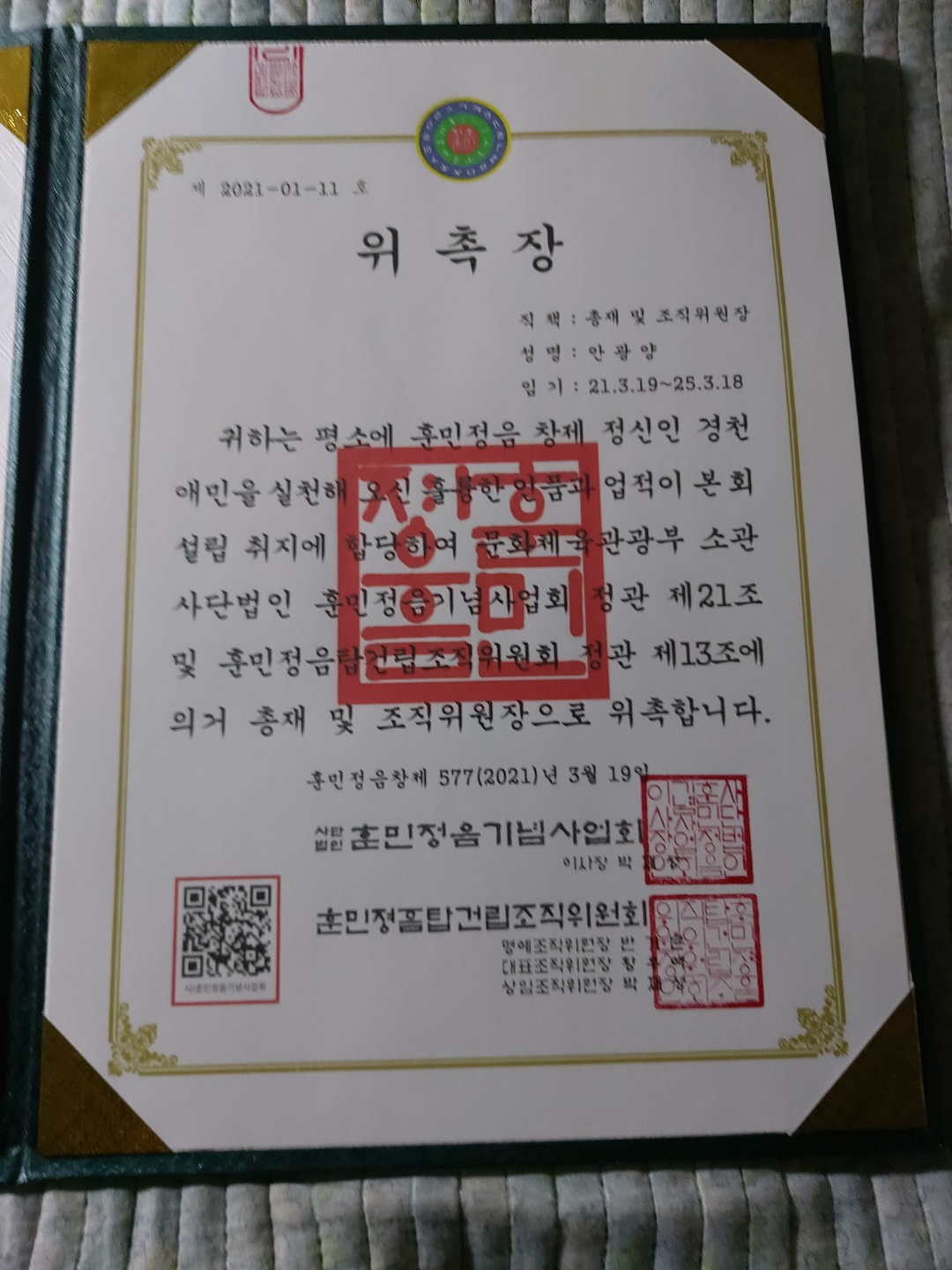 안광양 총재 및 조직위원장으로 추대 되었다.