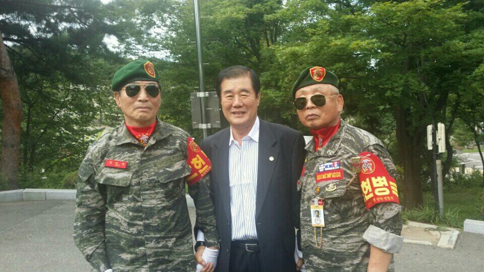 아시아자유청년연맹 안광양 총재와 육군제8군단장 강창구 중장과 기념사진 촬영