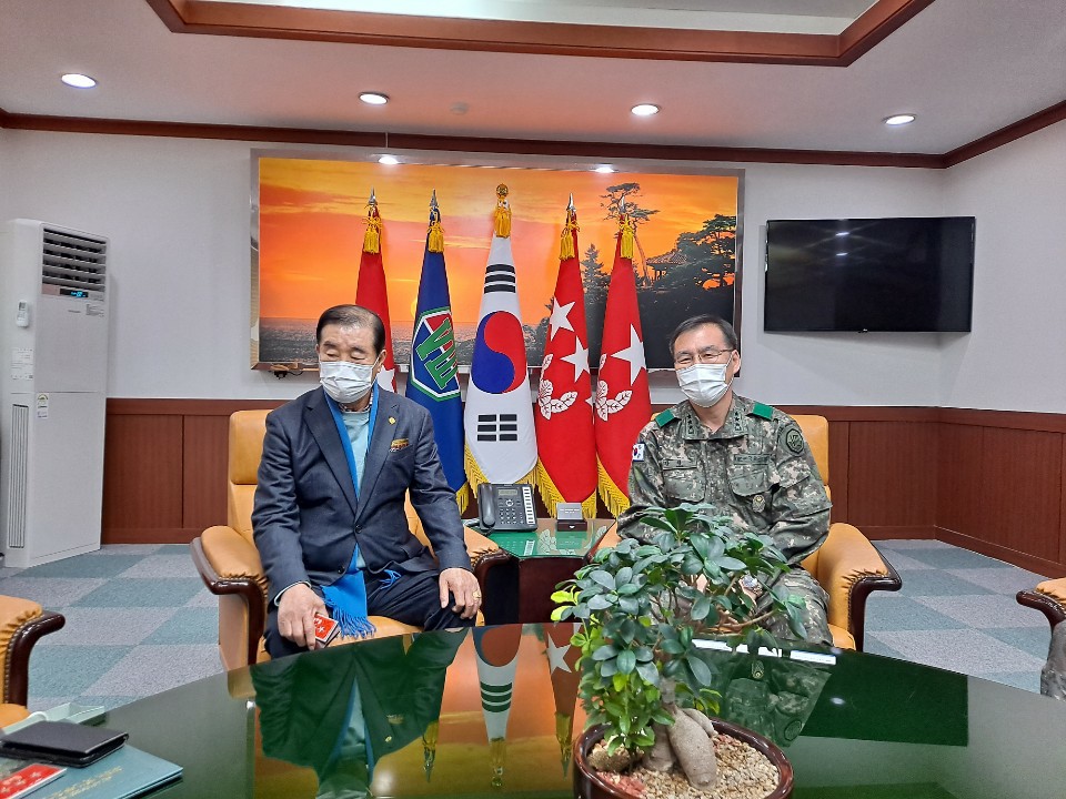 아시아자유청년연맹 안광양 총재와 육군제8군단장 강창구 중장과 기념사진 촬영